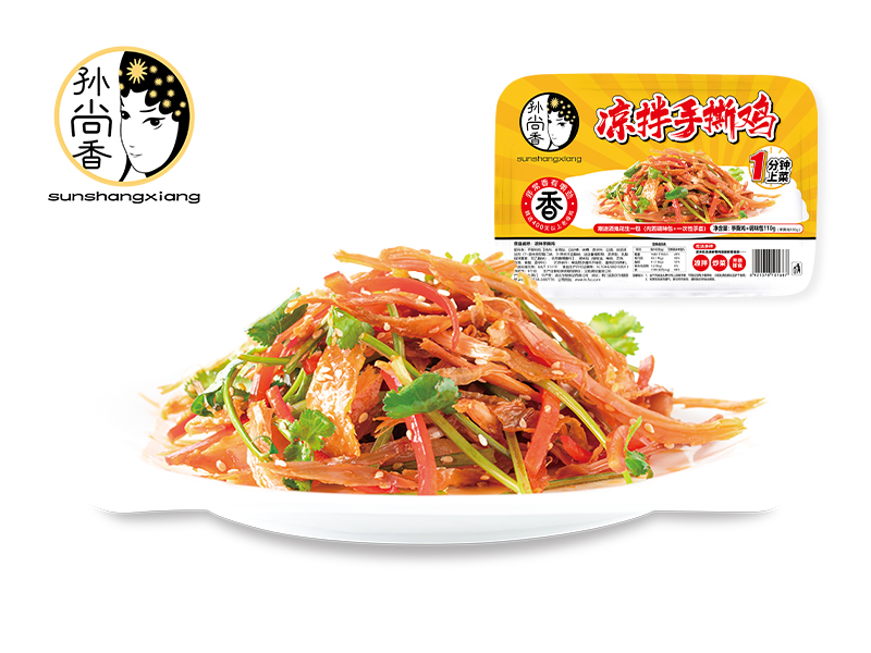 ③、打開(kāi)后涼拌即可食用,加入青紅椒絲、姜絲后味道更佳。